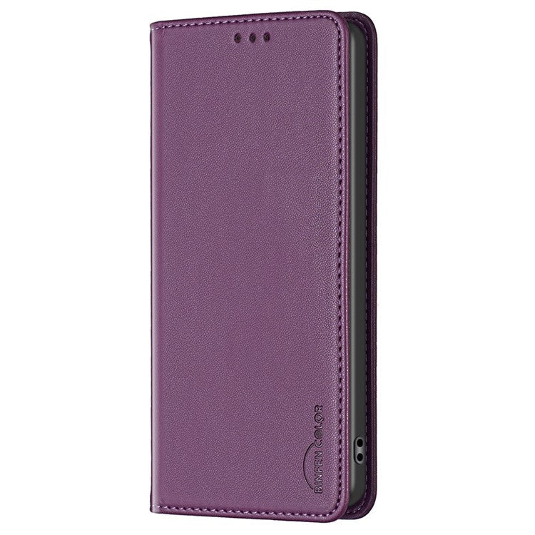 BINFEN COLOR BF18 For Honor 100 5G Cell Phone Case Card Holder Flip Stand Leather Cover - Dark Purple