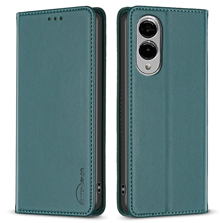 BINFEN COLOR BF18 For Samsung Galaxy S25 Edge Leather Case Card Slots Phone Cover - Green
