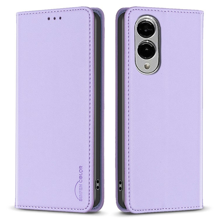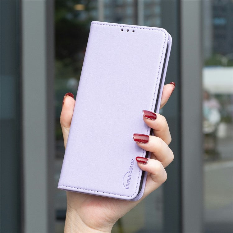 BINFEN COLOR BF18 For Samsung Galaxy S25 Edge Leather Case Card Slots Phone Cover - Purple