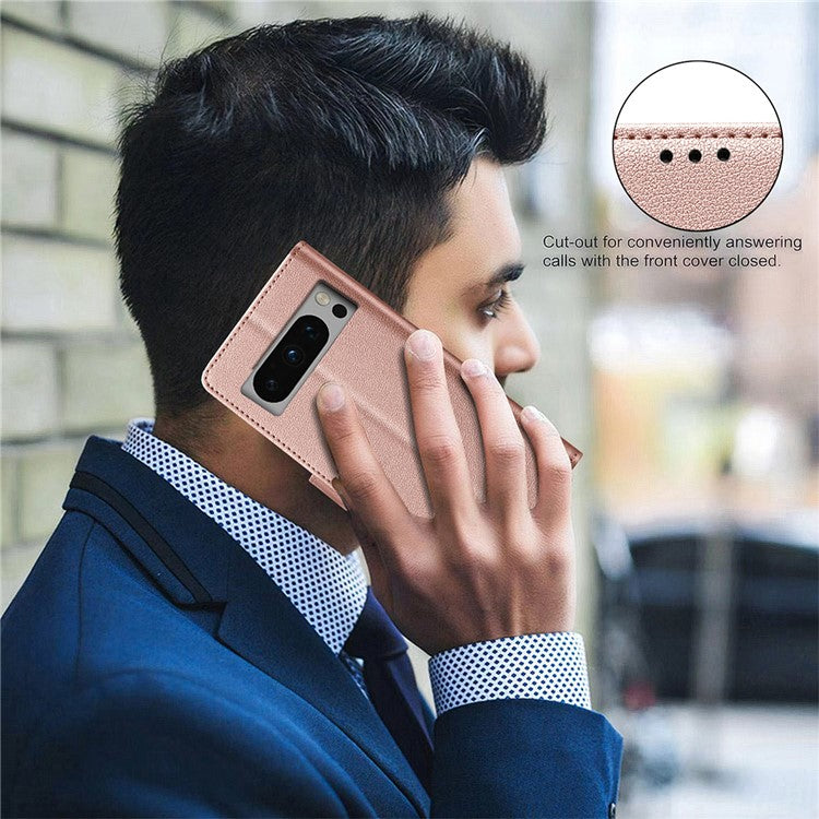 BINFEN COLOR BF32 For Google Pixel 8 Pro RFID Blocking Phone Case Litchi Texture Leather Phone Cover - Rose Gold