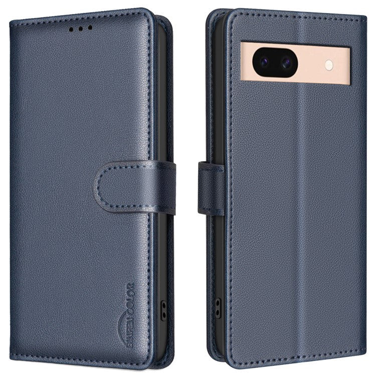 BINFEN COLOR BF32 For Google Pixel 8a Mobile Phone Case Litchi Texture RFID Blocking Leather Stand Cover - Blue