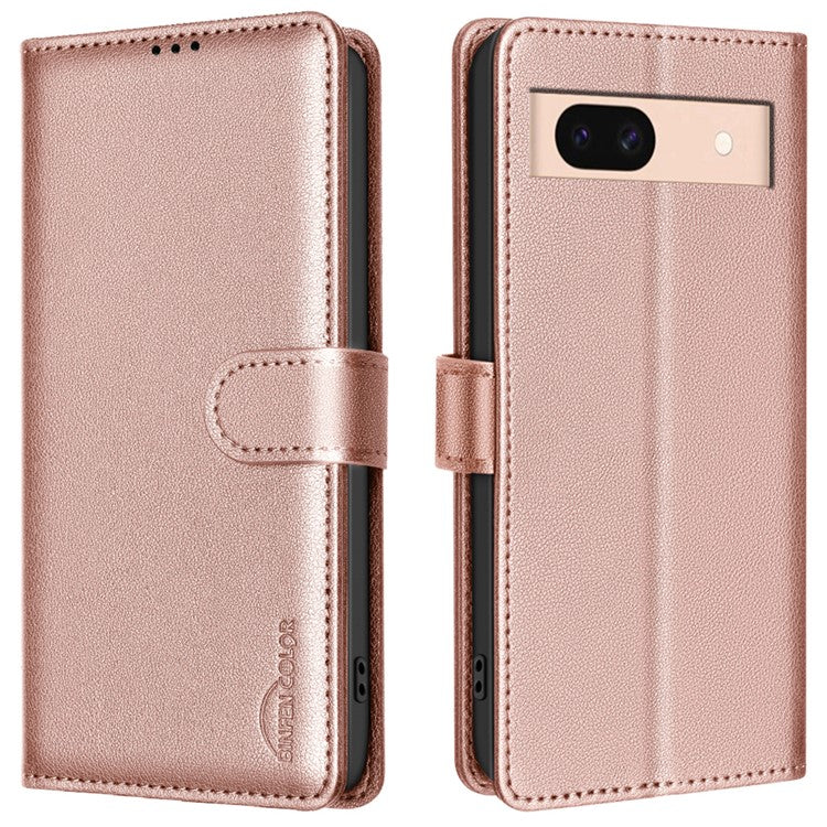 BINFEN COLOR BF32 For Google Pixel 8a Mobile Phone Case Litchi Texture RFID Blocking Leather Stand Cover - Rose Gold