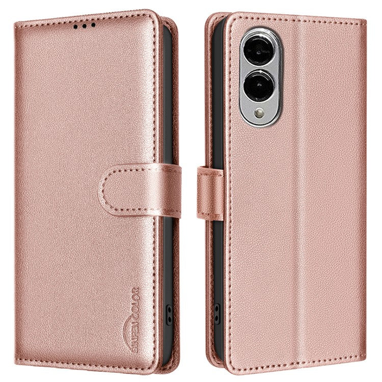 BINFEN COLOR BF32 For Samsung Galaxy S25 Edge Leather Case Wallet RFID Blocking Phone Cover - Rose Gold