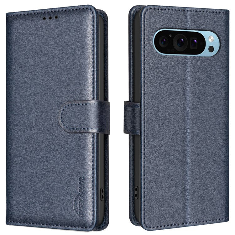 BINFEN COLOR BF32 Wholesale Phone Case for Google Pixel 9 Pro / Pixel 9 RFID Blocking Leather Phone Stand Cover - Blue