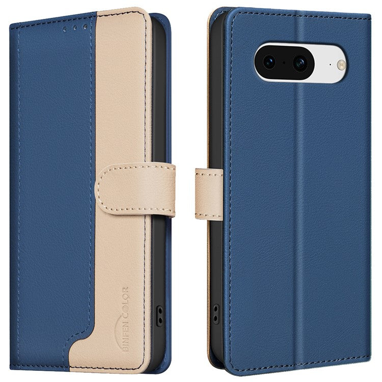 BINFEN COLOR BF33 For Google Pixel 8 Case RFID Blocking Leather Cover Splicing Color - Blue