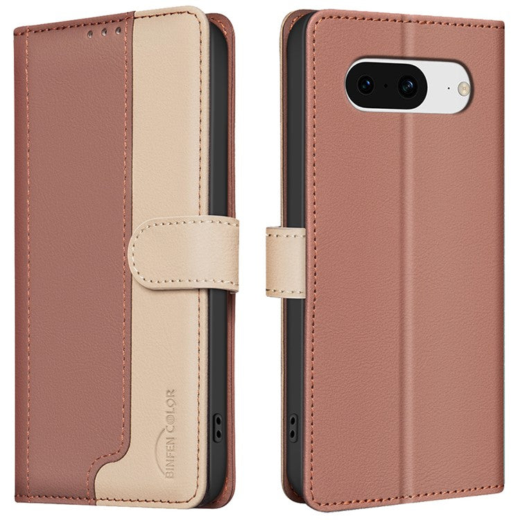 BINFEN COLOR BF33 For Google Pixel 8 Case RFID Blocking Leather Cover Splicing Color - Brown