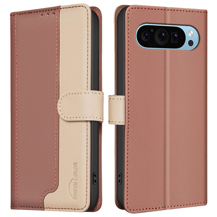 BINFEN COLOR BF33 For Google Pixel 9 Case Color Splicing Leather Cover with RFID Blocking - Brown