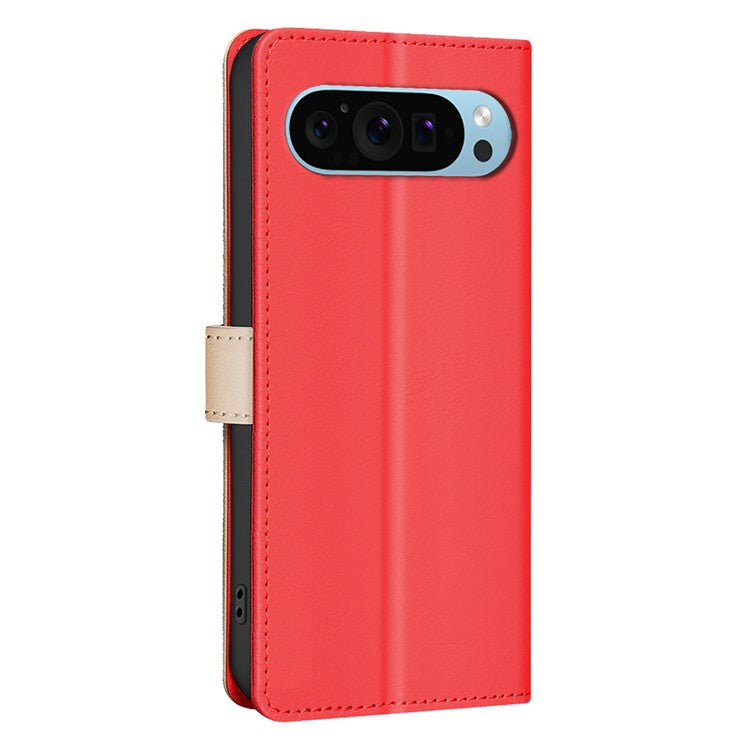 BINFEN COLOR BF33 For Google Pixel 9 Case Color Splicing Leather Cover with RFID Blocking - Red