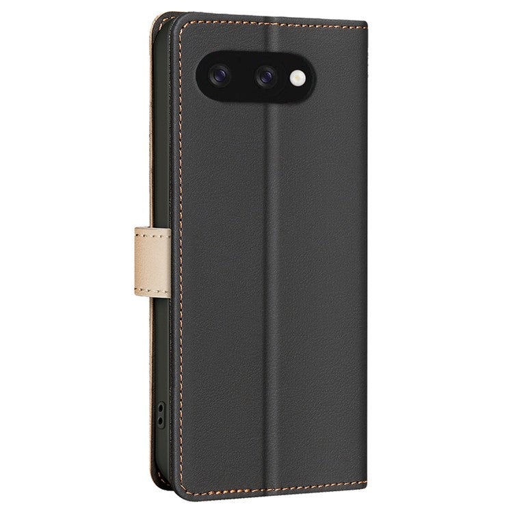 BINFEN COLOR BF33 for Google Pixel 9a Leather Case Splicing Color RFID Blocking - Black