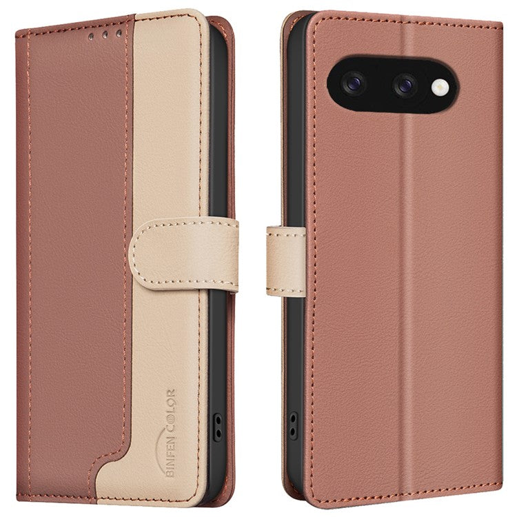 BINFEN COLOR BF33 for Google Pixel 9a Leather Case Splicing Color RFID Blocking - Brown