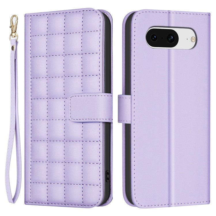 BINFEN COLOR BF34 for Google Pixel 8 Case Square Grid PU Leather Folio Flip Cover - Light Purple