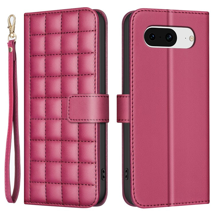 BINFEN COLOR BF34 for Google Pixel 8 Case Square Grid PU Leather Folio Flip Cover - Red