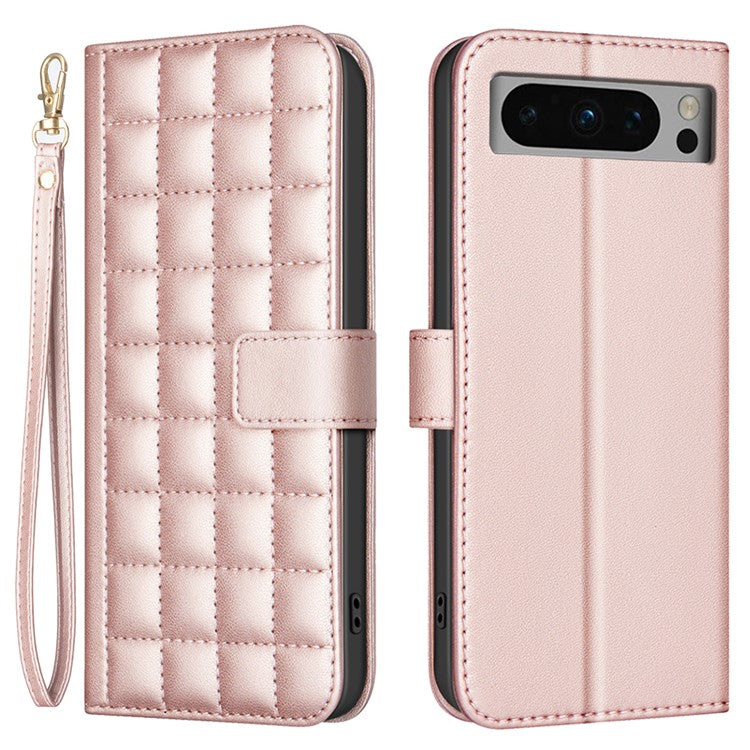 BINFEN COLOR BF34 for Google Pixel 8 Pro Case Leather Phone Cover Square Grid Pattern - Rose Gold