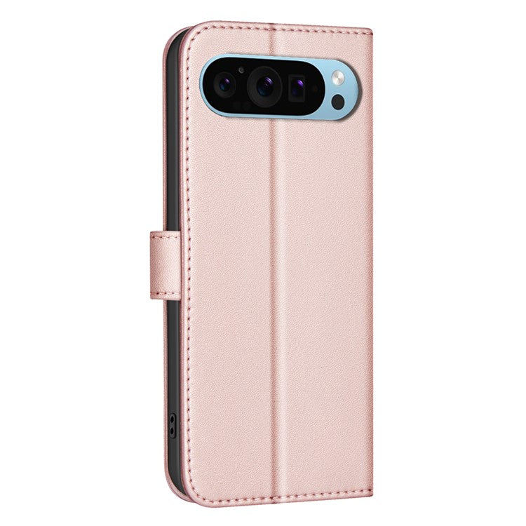 BINFEN COLOR BF34 for Google Pixel 9 Leather Case Wallet Card Slots Phone Cover - Rose Gold