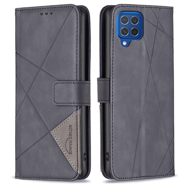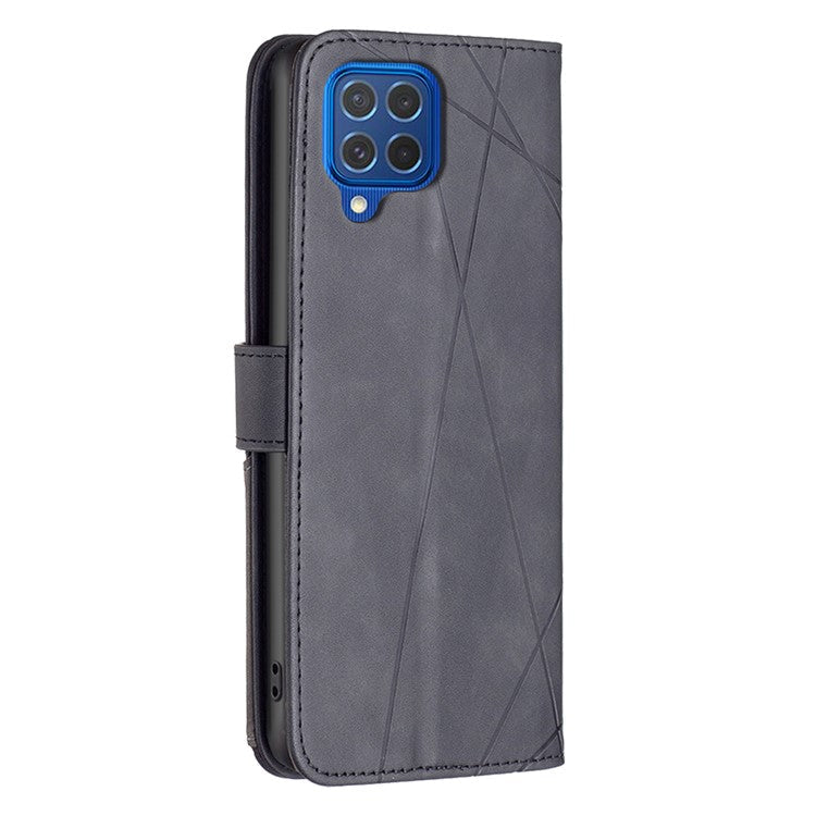BINFEN COLOR For Samsung Galaxy M62 / F62 Phone Cases Wallet Stand Geometry Imprinted Leather Cover - Black