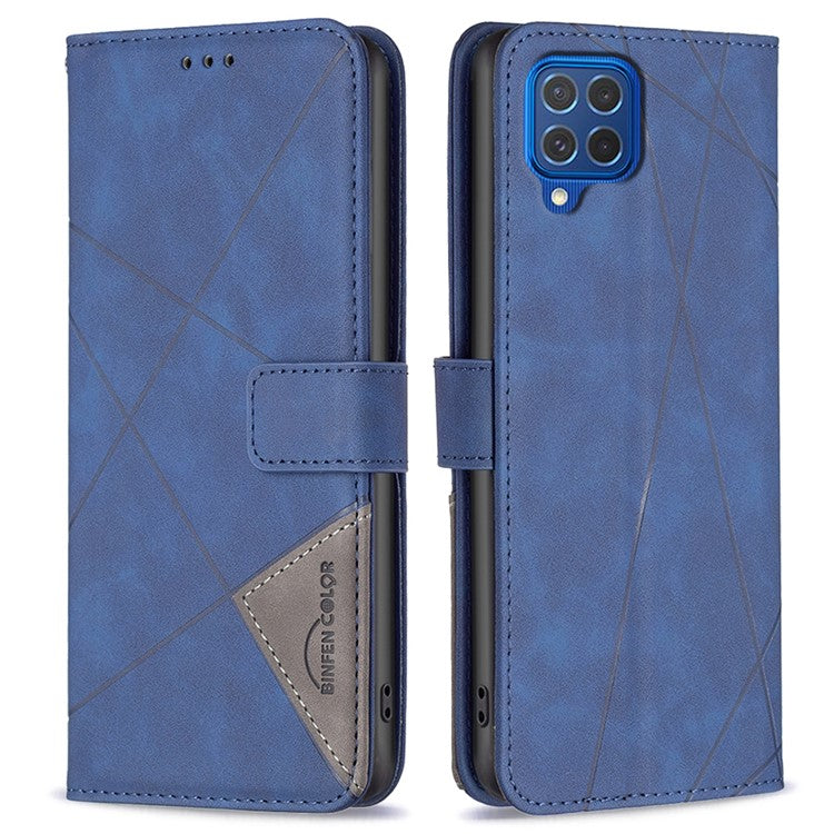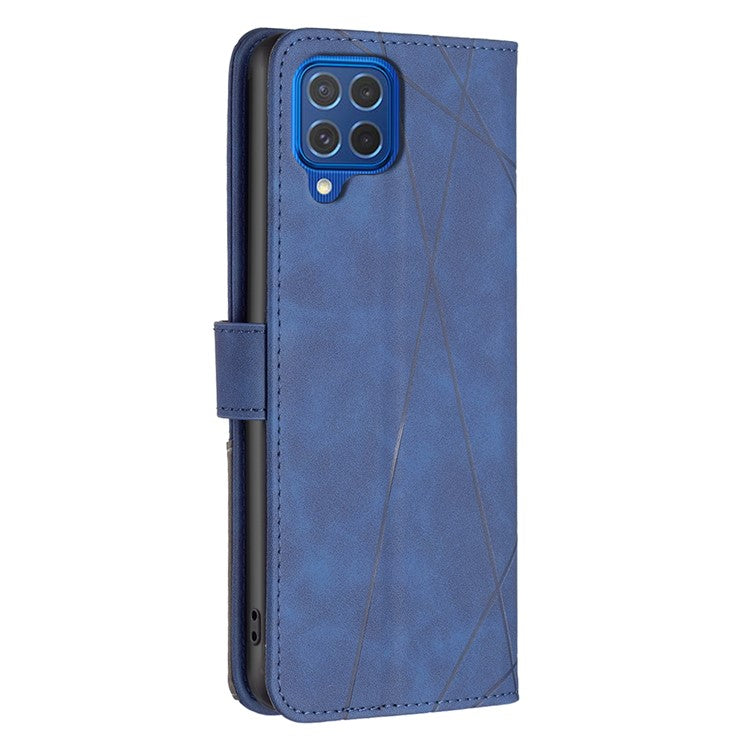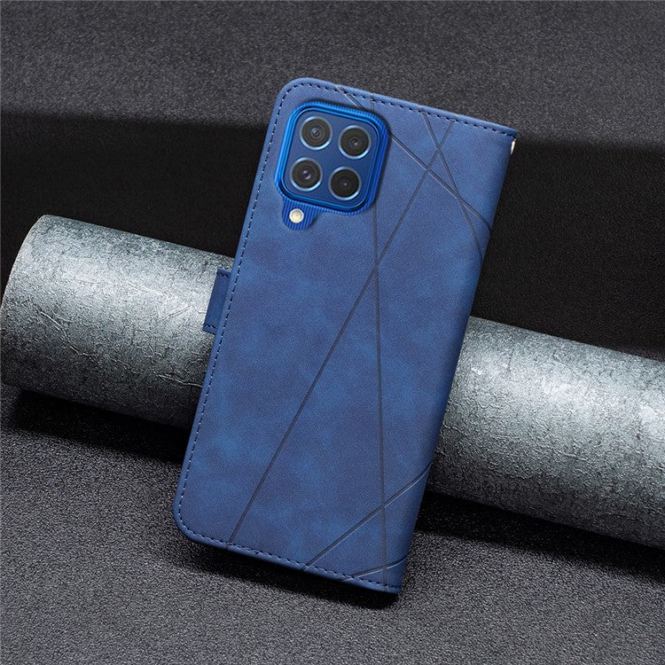 BINFEN COLOR For Samsung Galaxy M62 / F62 Phone Cases Wallet Stand Geometry Imprinted Leather Cover - Blue