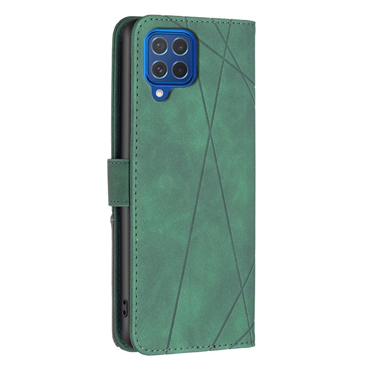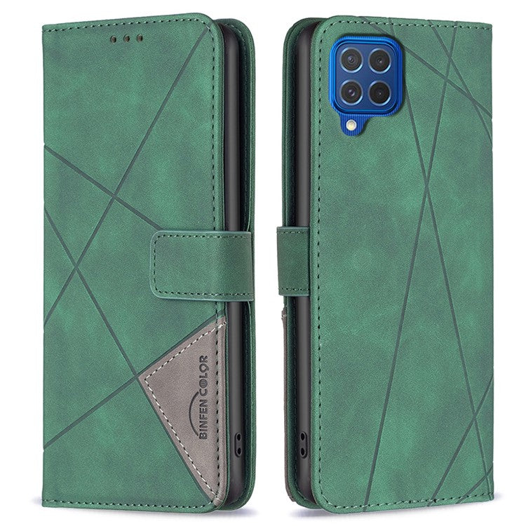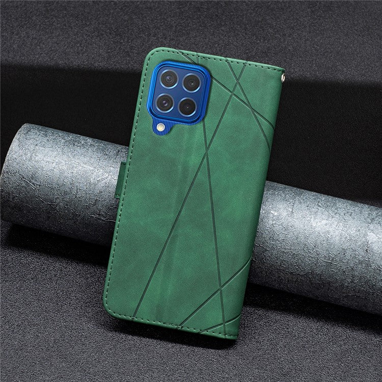 BINFEN COLOR For Samsung Galaxy M62 / F62 Phone Cases Wallet Stand Geometry Imprinted Leather Cover - Green