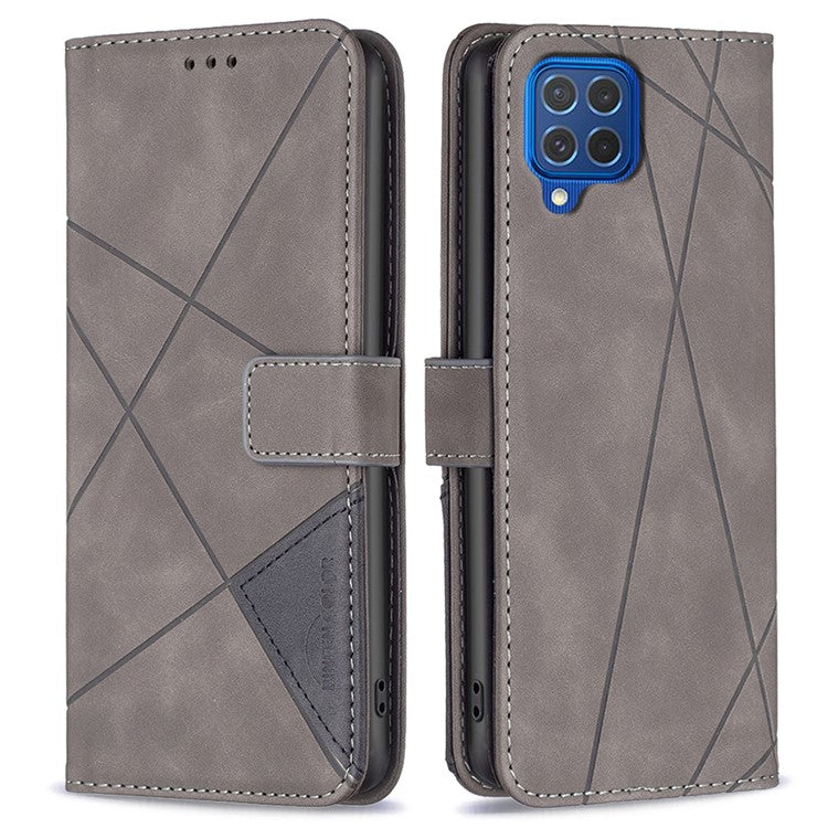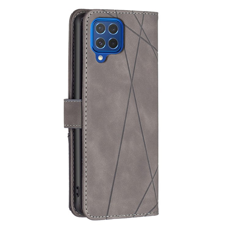 BINFEN COLOR For Samsung Galaxy M62 / F62 Phone Cases Wallet Stand Geometry Imprinted Leather Cover - Grey