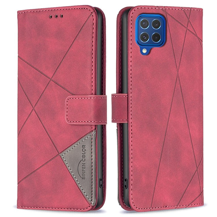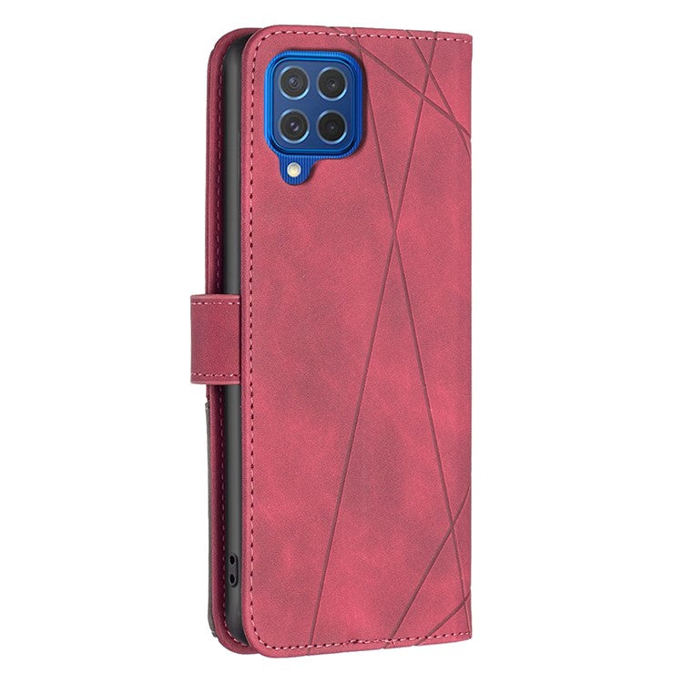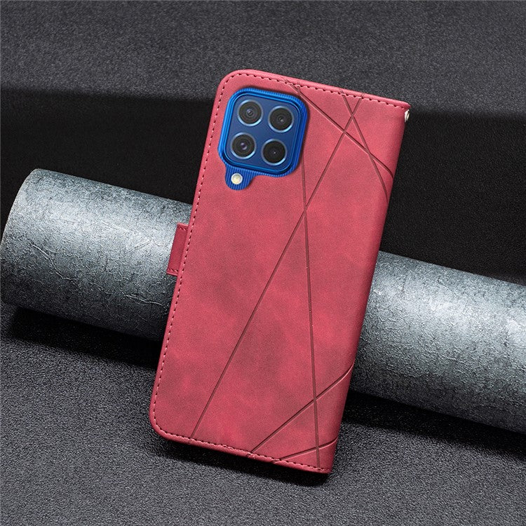 BINFEN COLOR For Samsung Galaxy M62 / F62 Phone Cases Wallet Stand Geometry Imprinted Leather Cover - Red