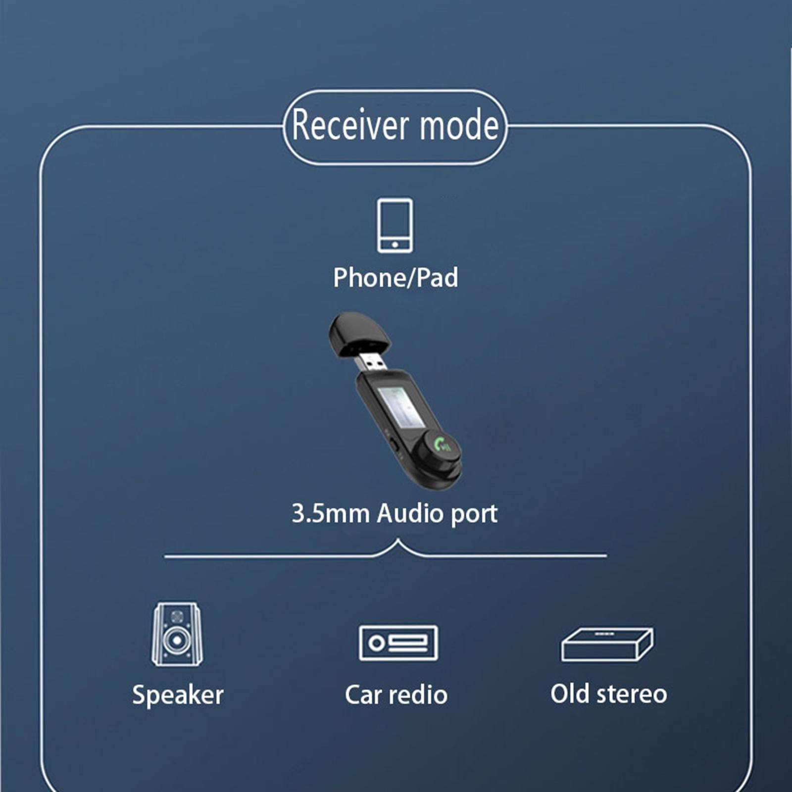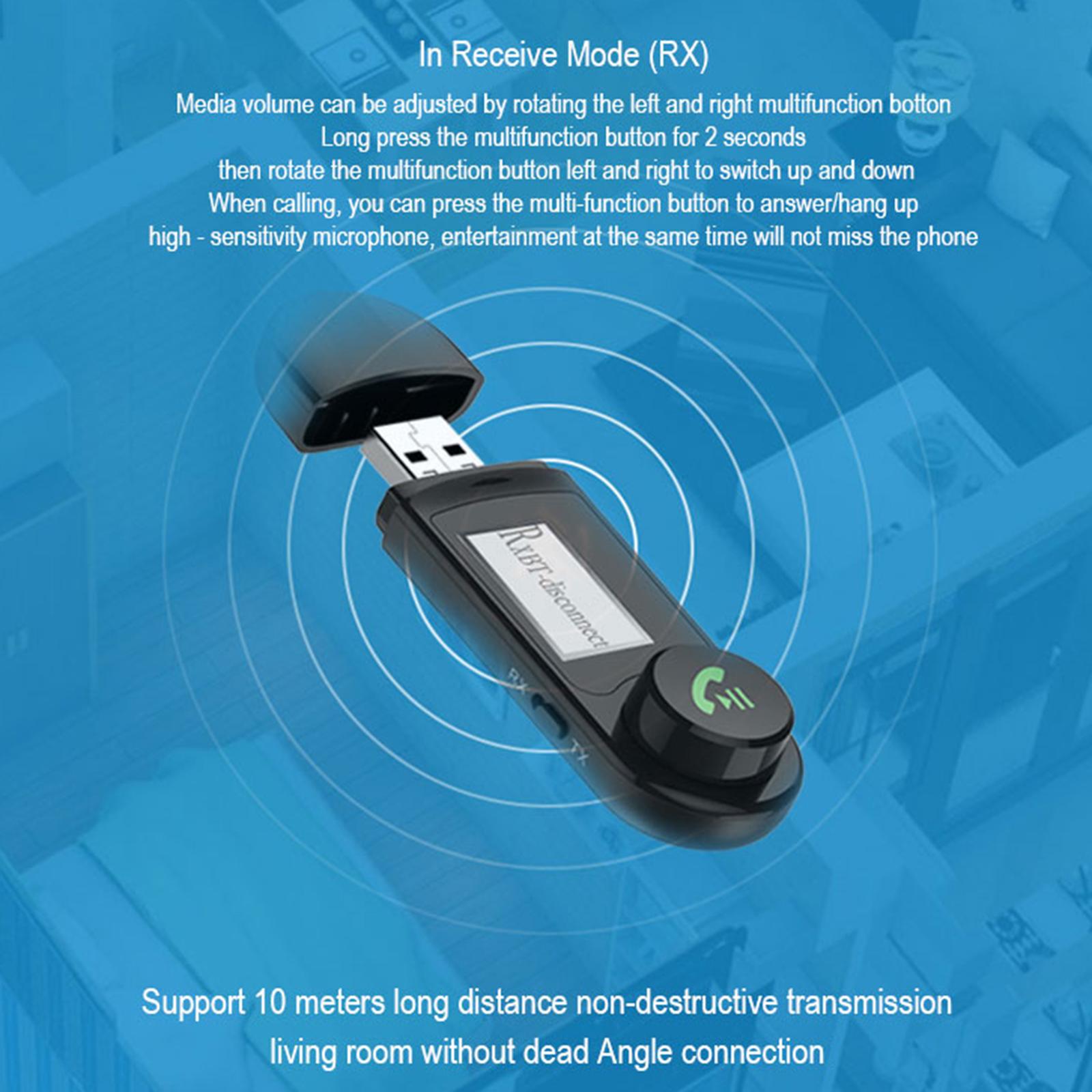 Transmitter receiver 2 in 1 mode design, using this wireless adapter, you can send and receive all audio freely and easily. The transmitter enables your TV, AV receiver, radio, and other home audio source devices to stream music to your Bluetooth headset or speakers, meanwhile receiver enables non-Bluetooth devices wirelessly transfer music from your phone/PC.