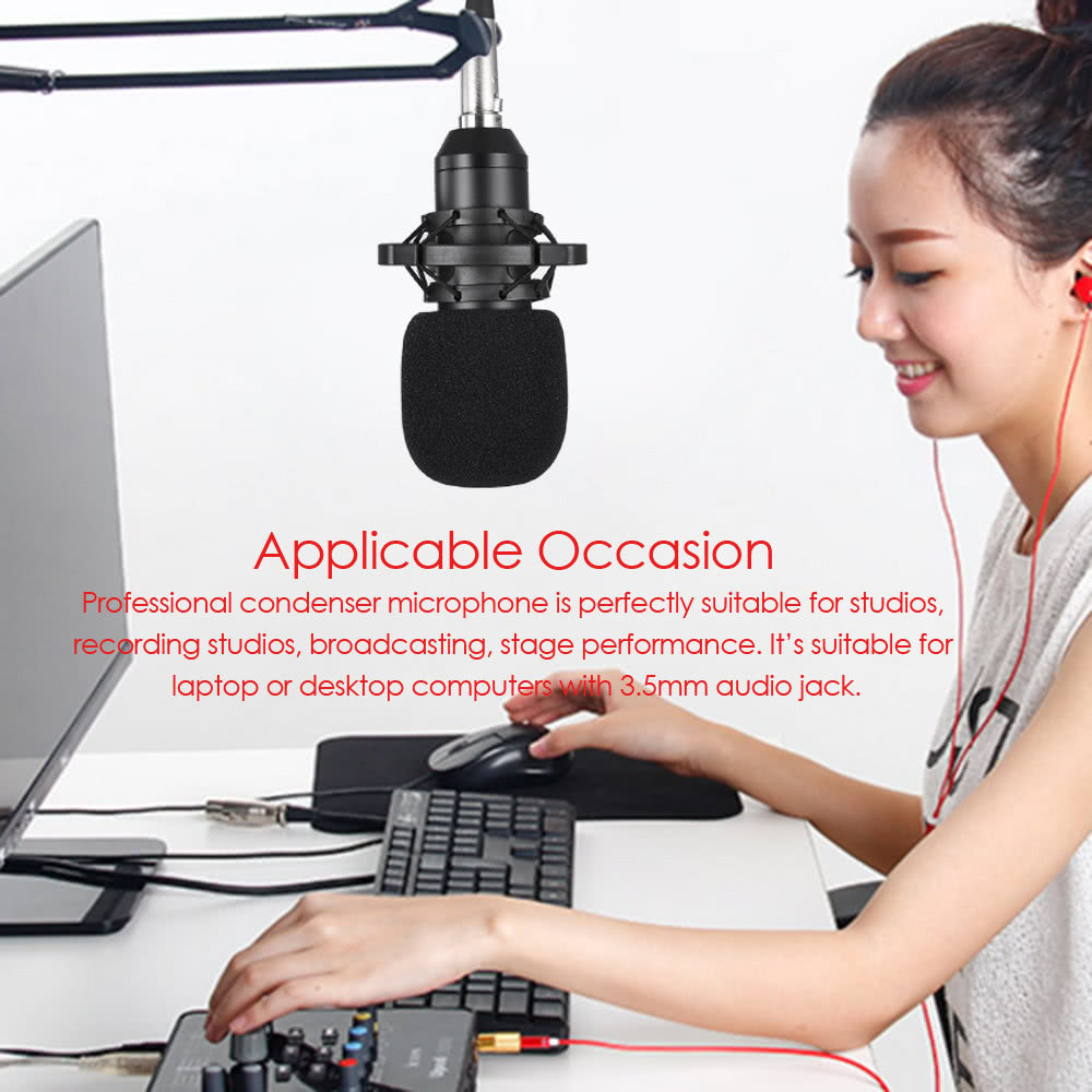 Applicable Occasion: Professional condenser microphone is perfectly suitable for studios, recording studios, broadcasting, stage performance. It's suitable for laptop or desktop computers with 3.5mm audio jack