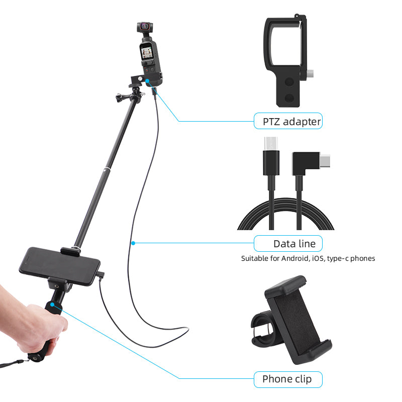 - Transfer from the TYPE-C interface at the bottom for Pocket 2 gimbal camera to directly connect to Type-C/Android/for Lightning