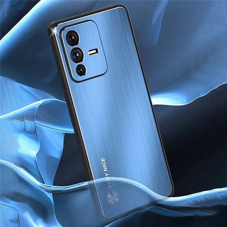 Brushed Surface Phone Case for vivo S12, Anti-scratch Precise Cutout TPU Edge Aluminium Alloy Back Cover - Blue