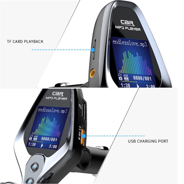 - 1.44 inch TFT true color screen, display frequency, playback mode, EQ sound effect mode, read data, music name and display voltage