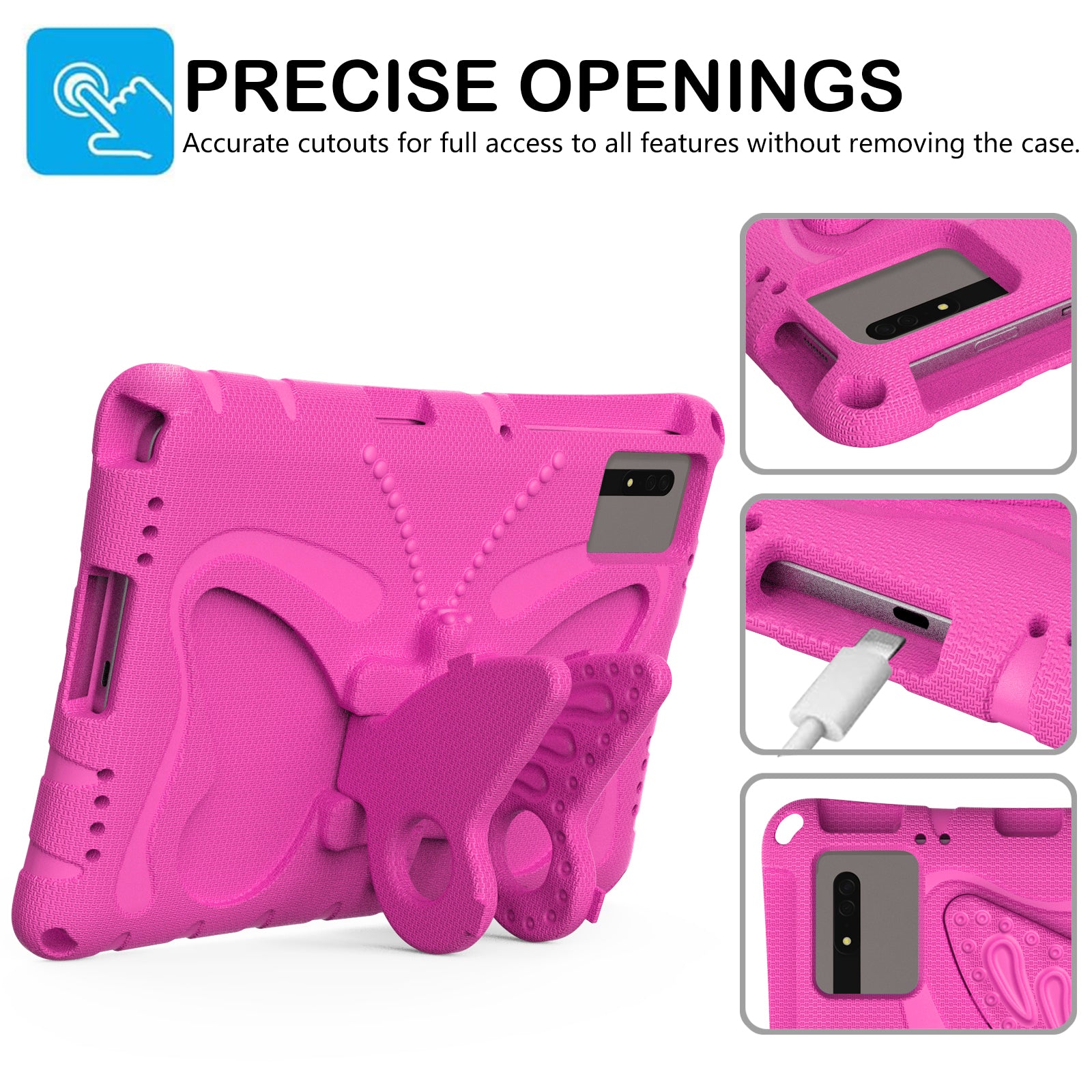 Butterfly Kickstand EVA Tablet Cover For Huawei MatePad SE 11 / Lenovo Tab M11 / Samsung Galaxy Tab S9 FE / S9 / S8 / S7 / Xiaomi Redmi Pad SE / Pad 6 - Rose