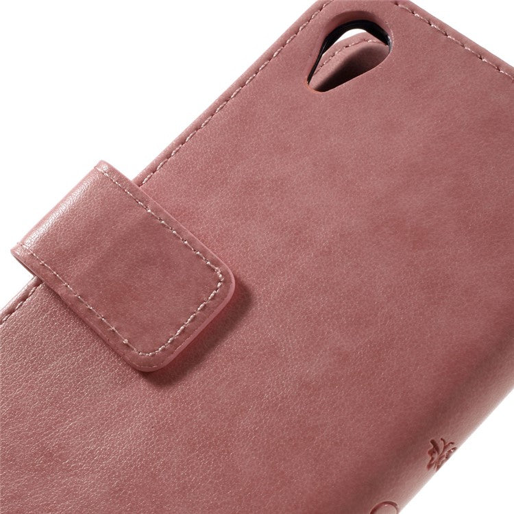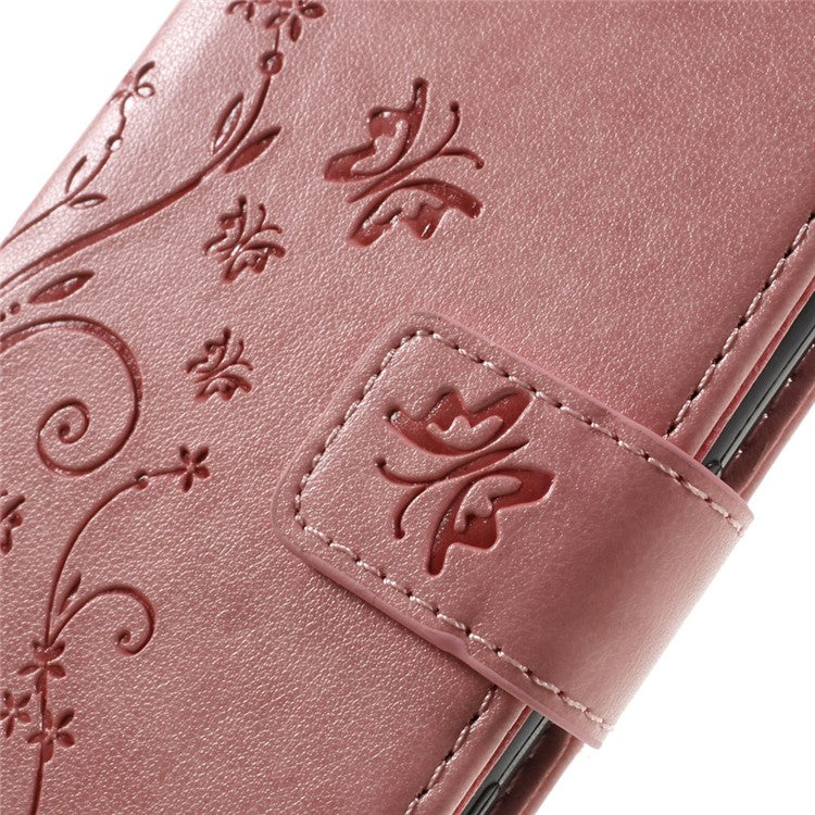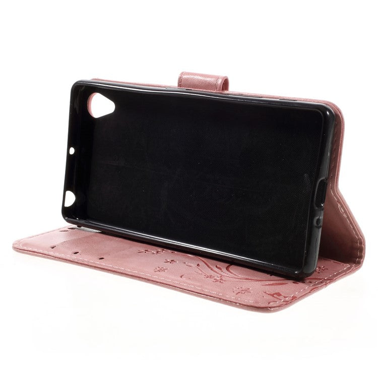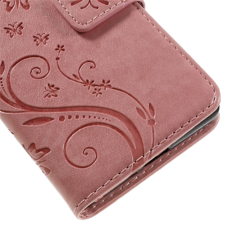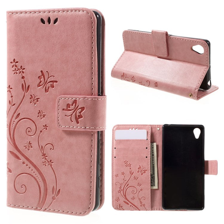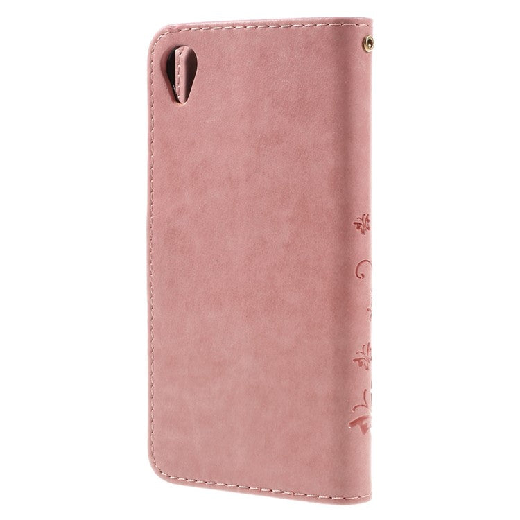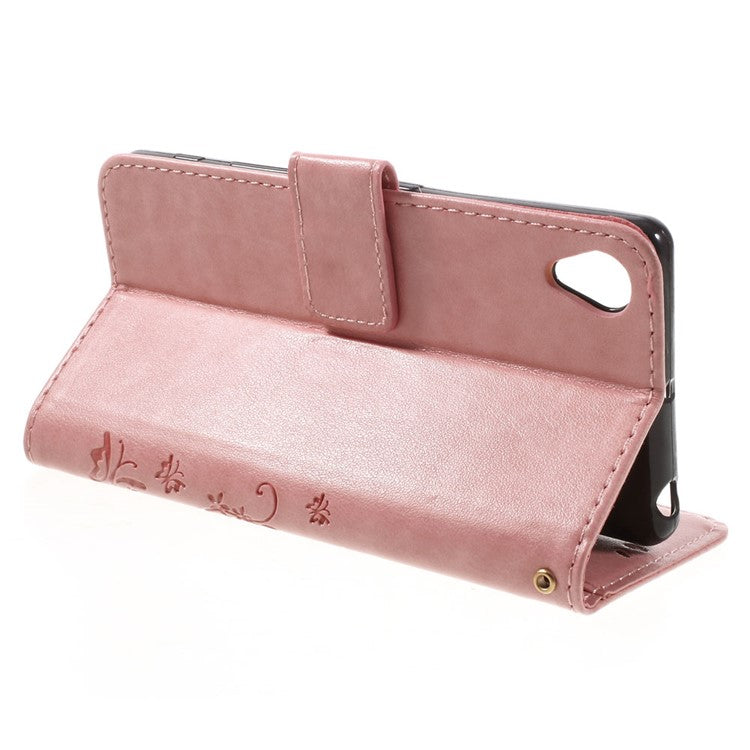 Butterfly Leather Wallet Stand Shell for Sony Xperia X - Pink