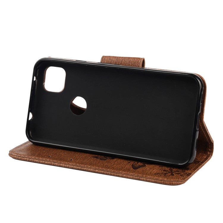 Butterfly Pattern Imprinting TPU + PU Leather Phone Protector for Google Pixel 4a - Brown