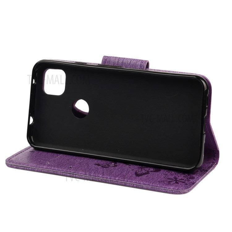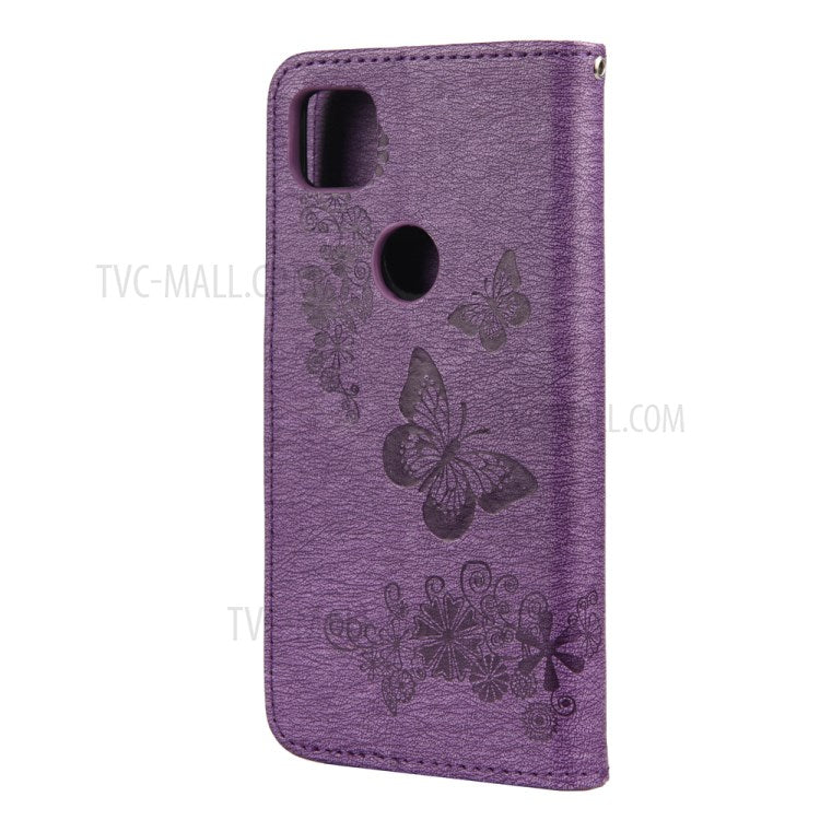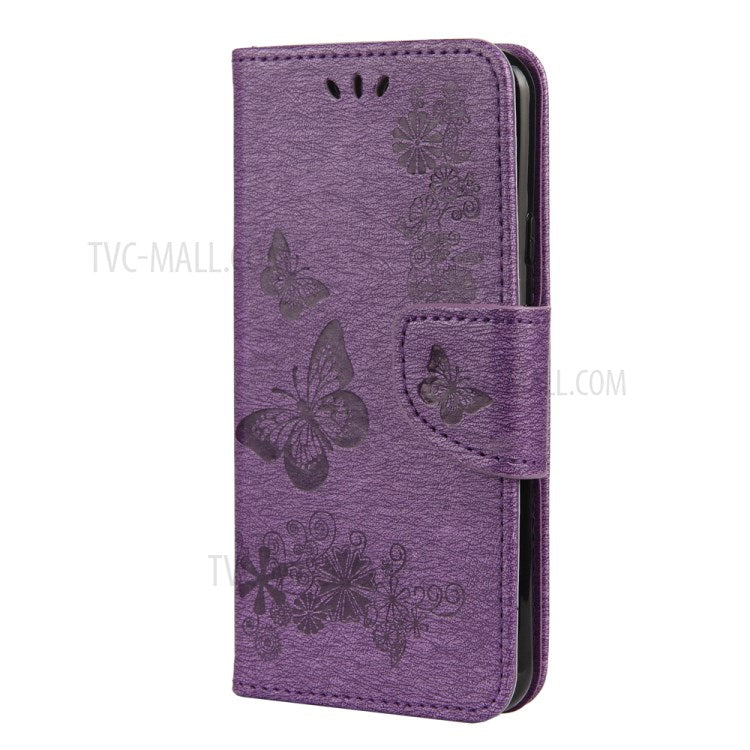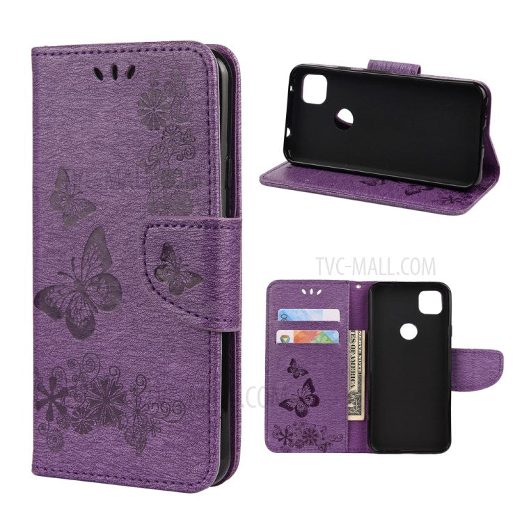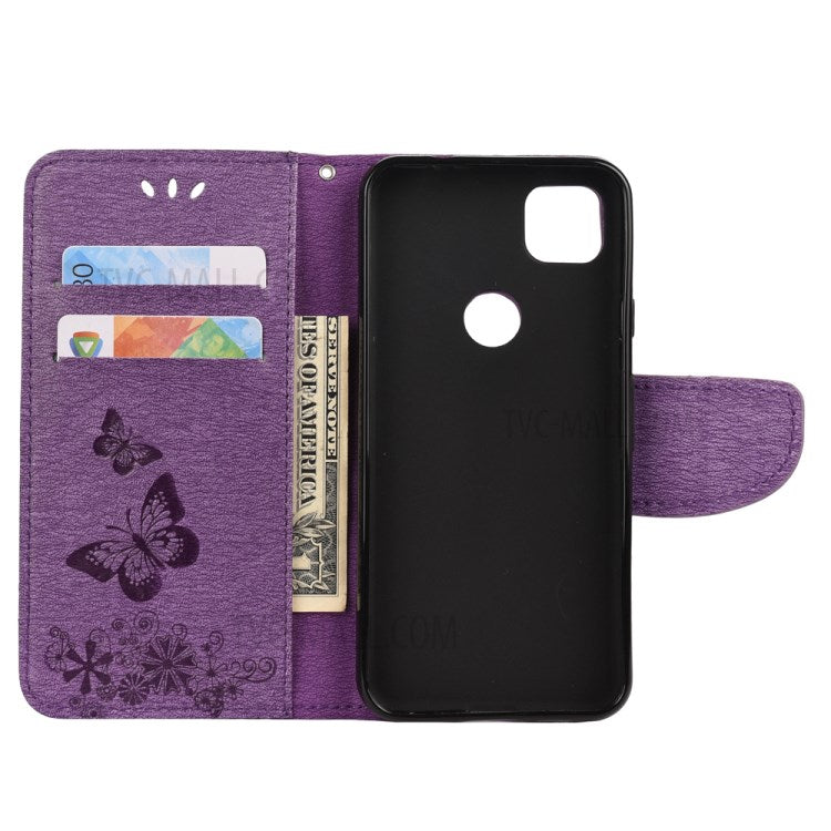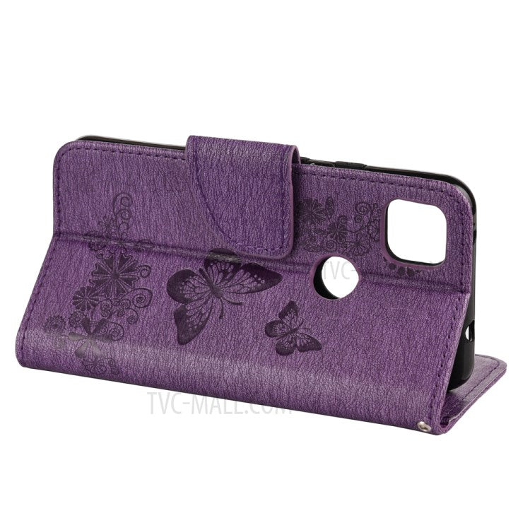 Butterfly Pattern Imprinting TPU + PU Leather Phone Protector for Google Pixel 4a - Purple