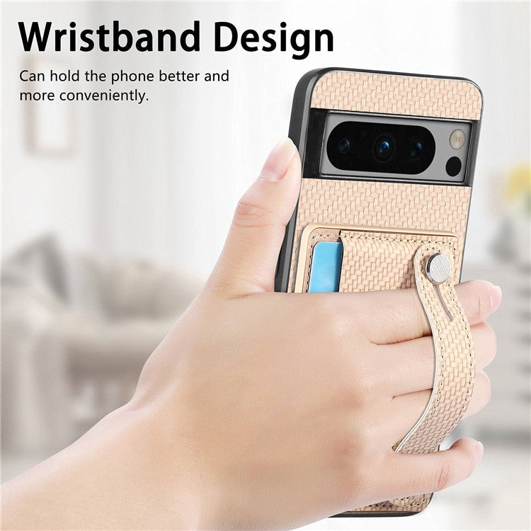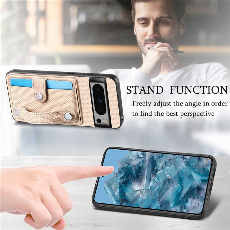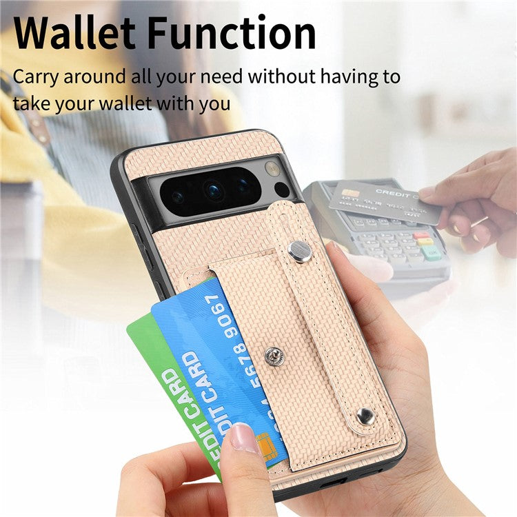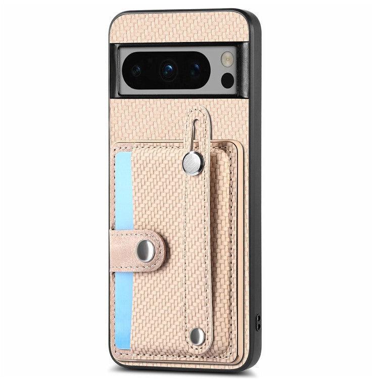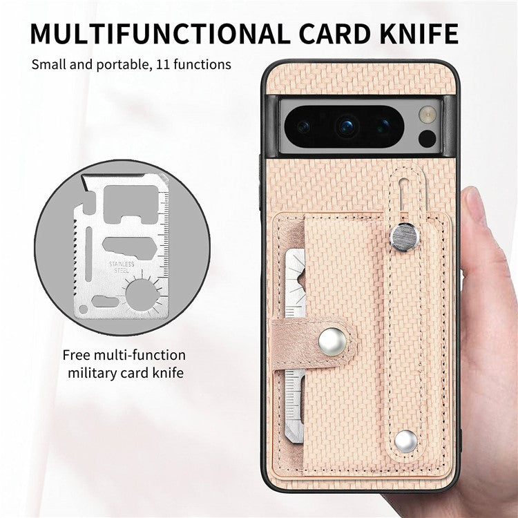C1-01 For Google Pixel 8 Pro Case Card Holder Leather Back Cover Wristband Card Knife Tool - Khaki