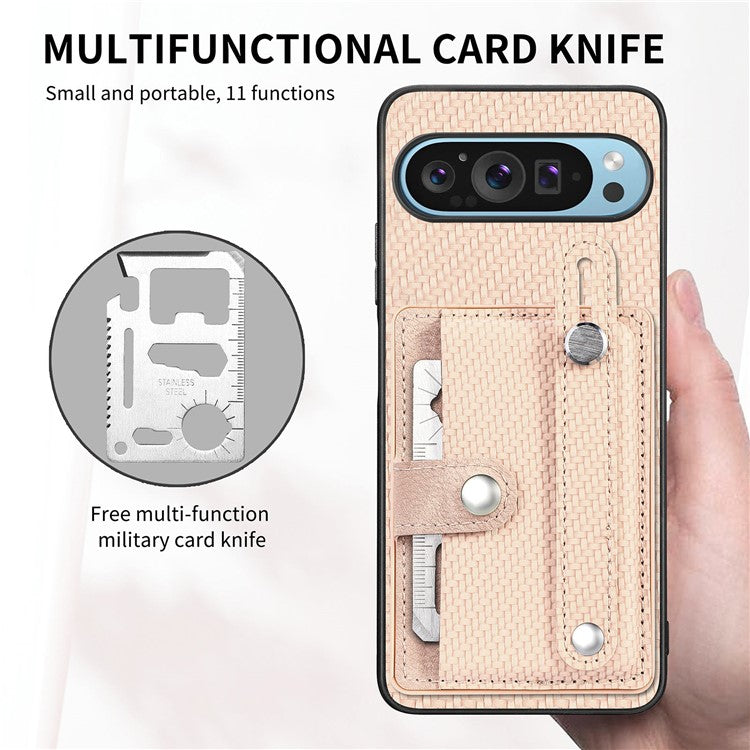 C1-01 For Google Pixel 9 Case Card Holder Kickstand PU Leather Back Phone Cover - Khaki