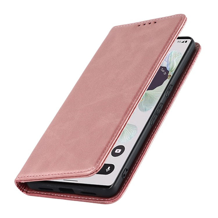 Calf Texture PU Leather Case for Google Pixel 7 Pro 5G, Magnetic Auto Closing Phone Stand Wallet Cover - Rose Gold