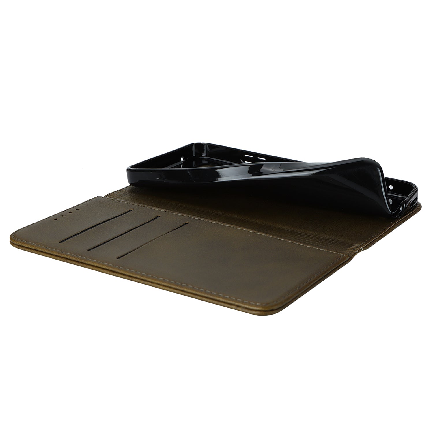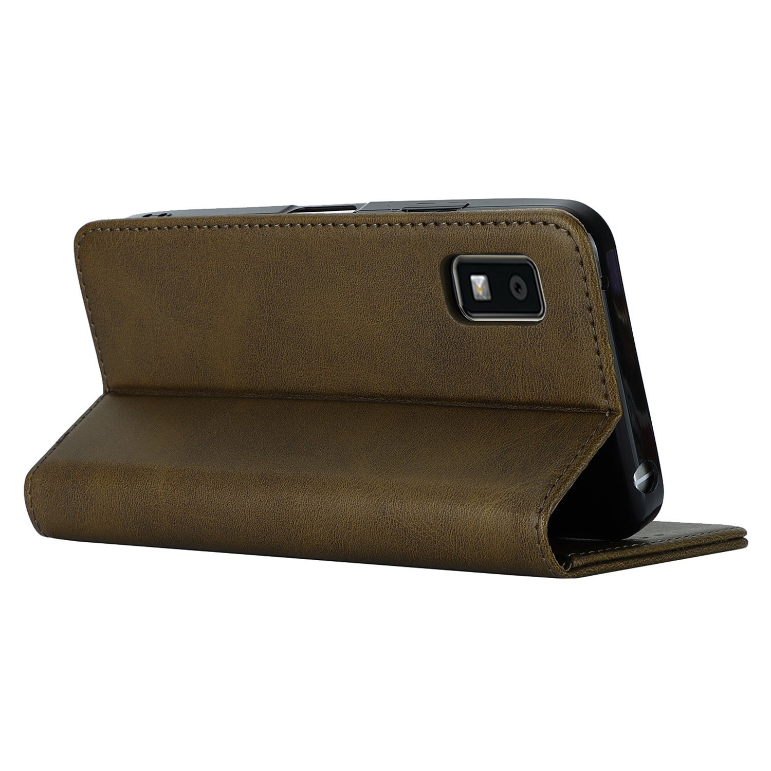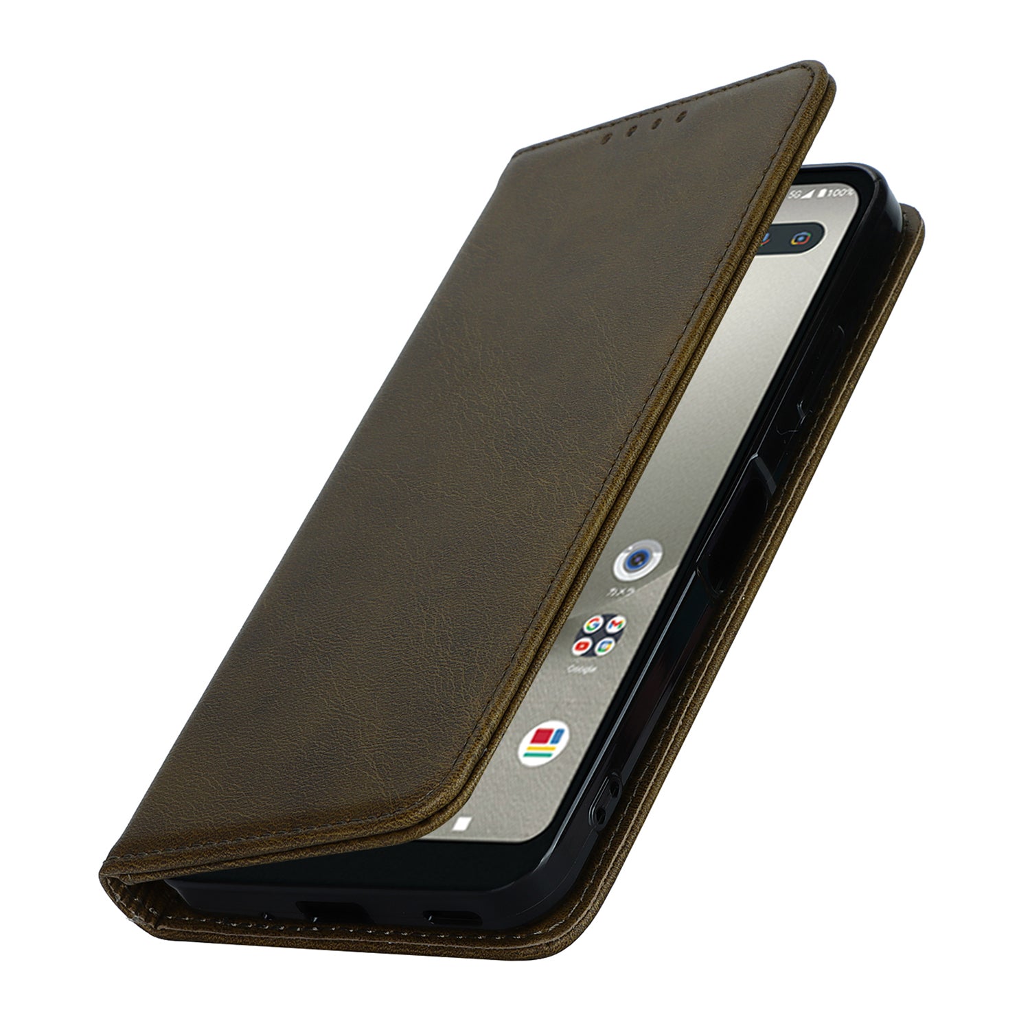 Calf Texture PU Leather Case for Sharp Aquos Wish3 Shockproof Stand Wallet Phone Cover - Dark Green