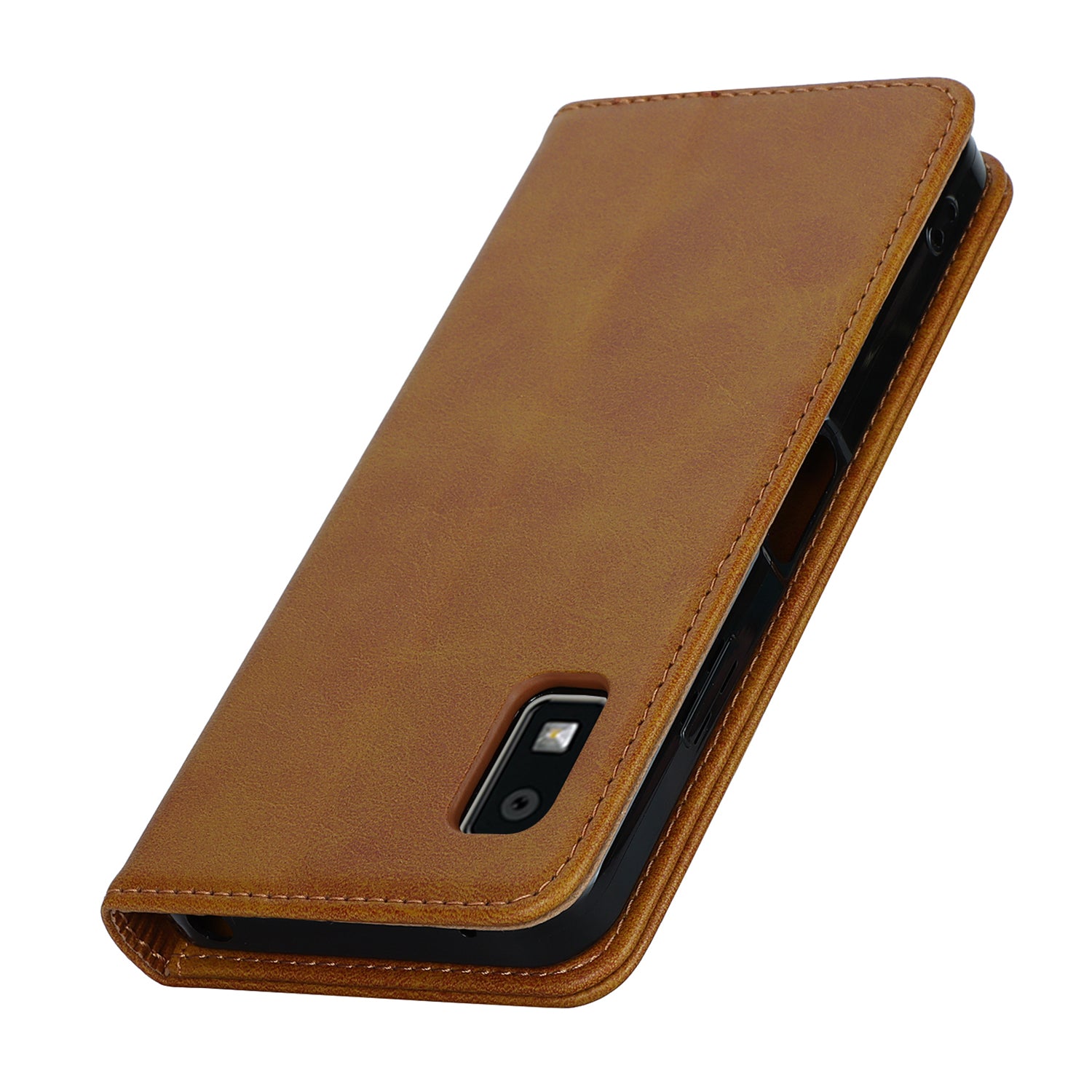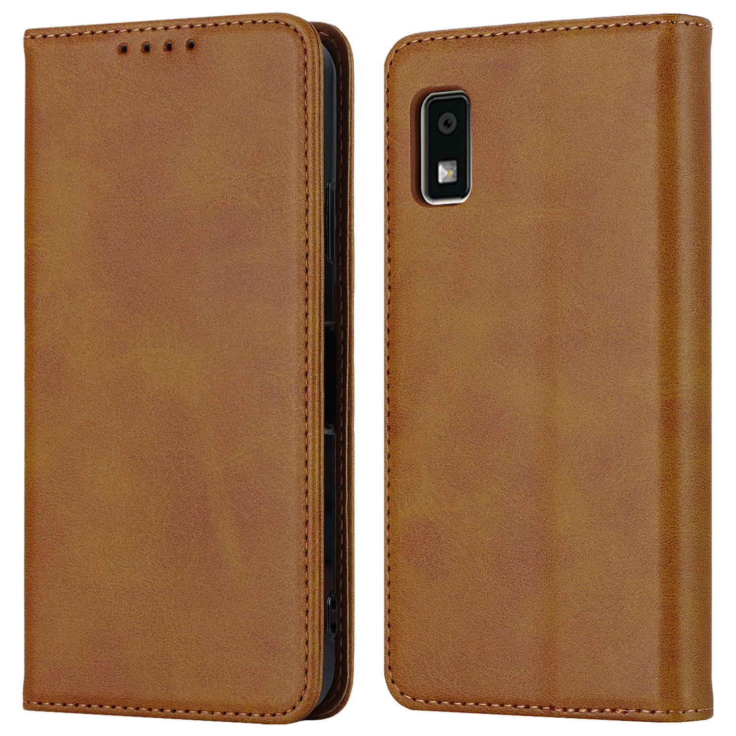 Calf Texture PU Leather Case for Sharp Aquos Wish3 Shockproof Stand Wallet Phone Cover - Light Brown