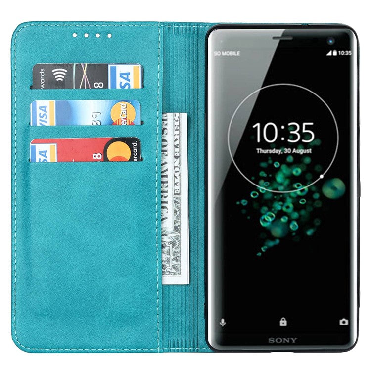 Calf Texture PU Leather Case for Sony Xperia XZ3, Stand Wallet Design Magnetic Auto Closing Phone Drop-proof Cover - Sky Blue