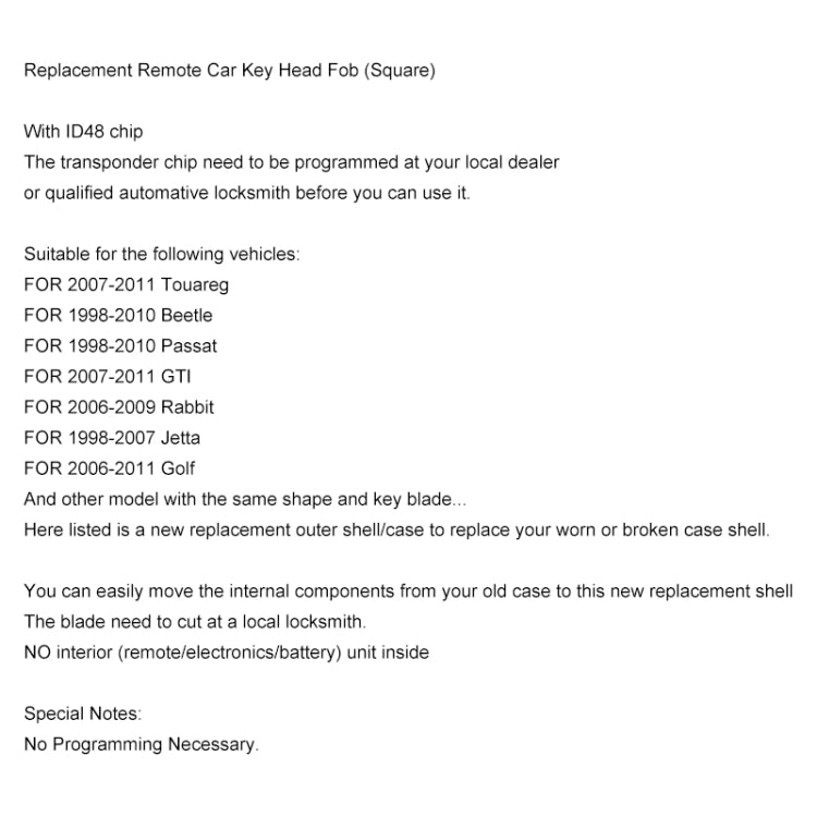 Car Remote Key Head with ID48 Chip for Volkswagen
