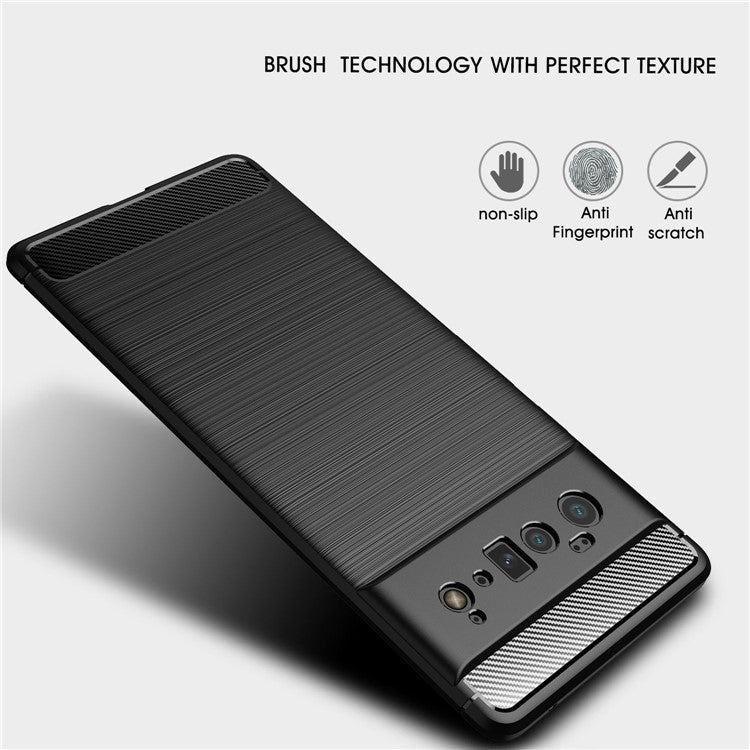 Carbon Fiber Brushed Texture Shockproof Anti-Fingerprint Flexible Soft TPU Protective Phone Cover for Google Pixel 6 Pro - Black
