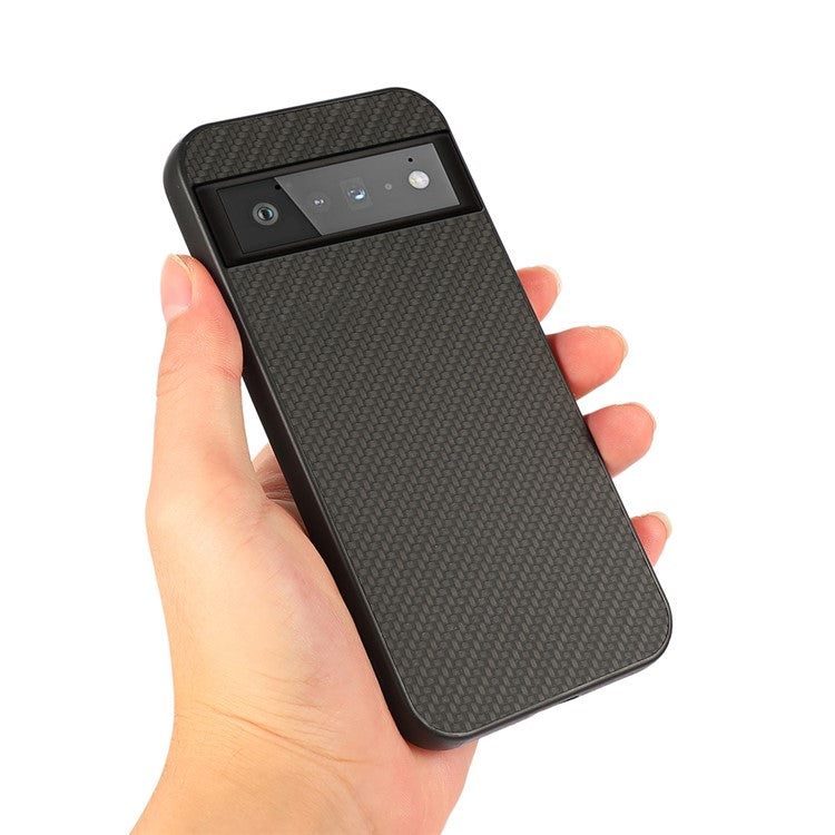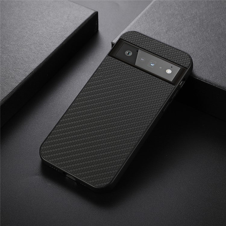 Carbon Fiber Texture Cell Phone Leather Case for Google Pixel 6 Pro - Black