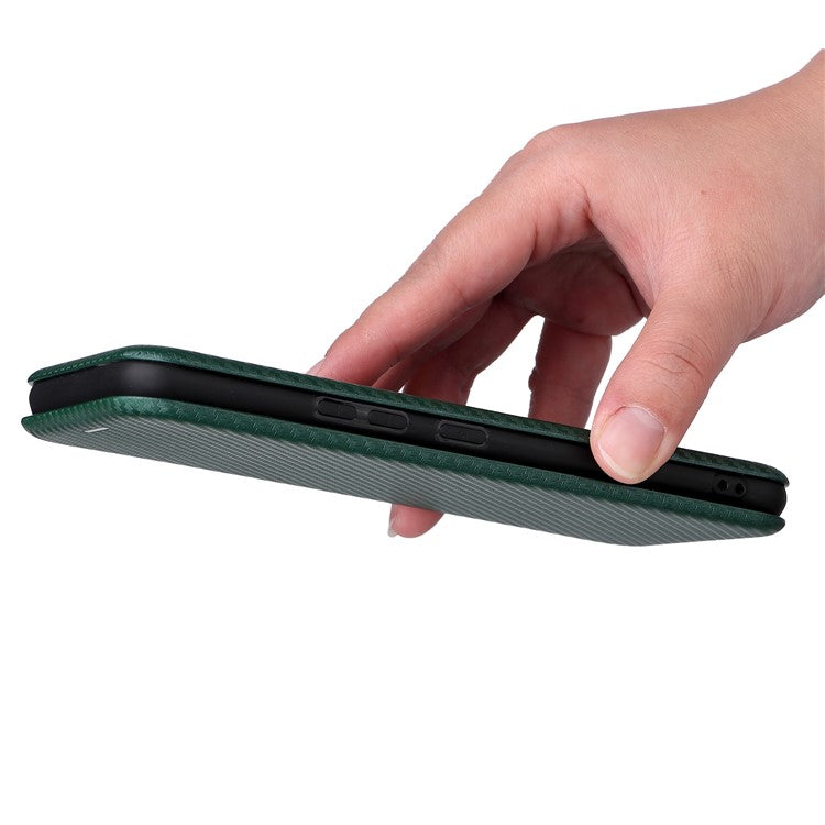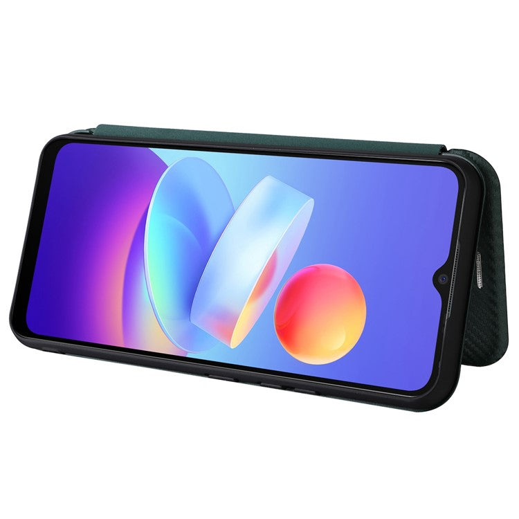 Carbon Fiber Texture Magnetic Auto Closing PU Leather Phone Case Cover with Stand and Card Slot for vivo Y3s (2021) - Green