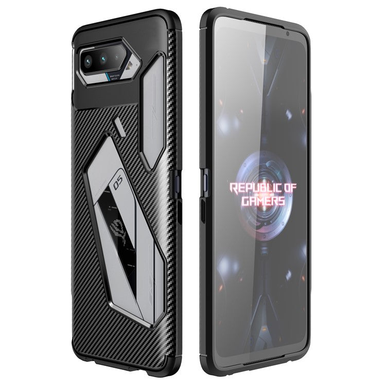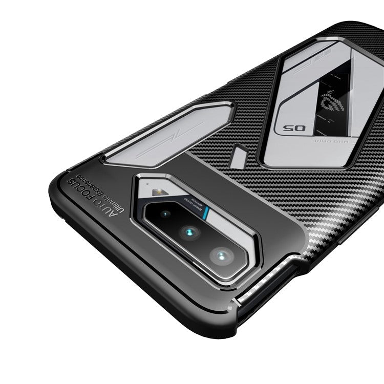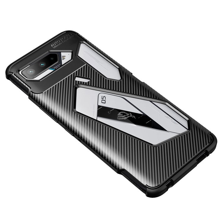 Carbon Fiber Texture Precise Cut-Out Well-Protected TPU Phone Protector Cover for Asus ROG Phone 5 - Black