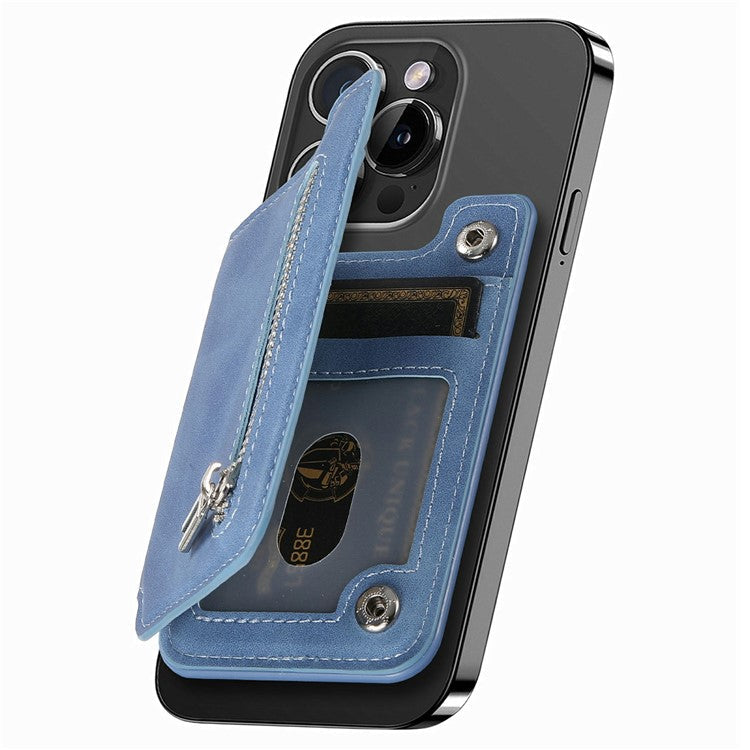 Card Holder Compatible with MagSafe Kickstand Leather Zipper Card Bag RFID Blocking - Blue