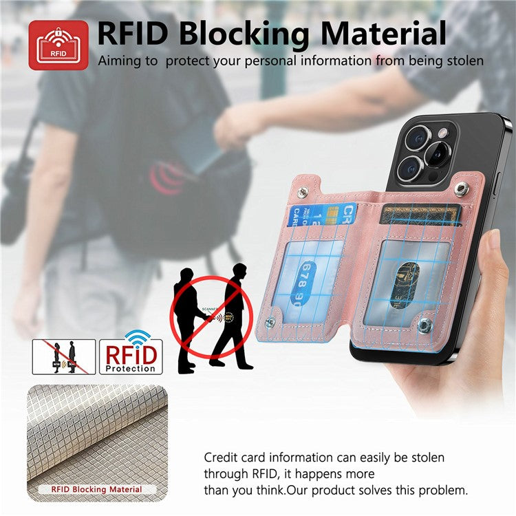 Card Holder Compatible with MagSafe Kickstand Leather Zipper Card Bag RFID Blocking - Pink