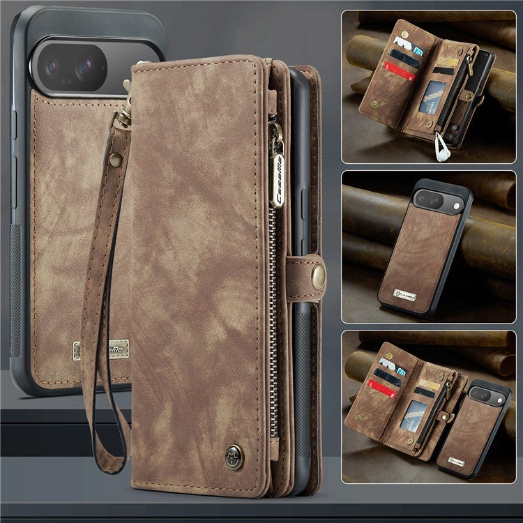 CASEME 008 Series for Google Pixel 9 / Pixel 9 Pro Case Leather Phone Cover Zipper Pocket Wallet - Brown