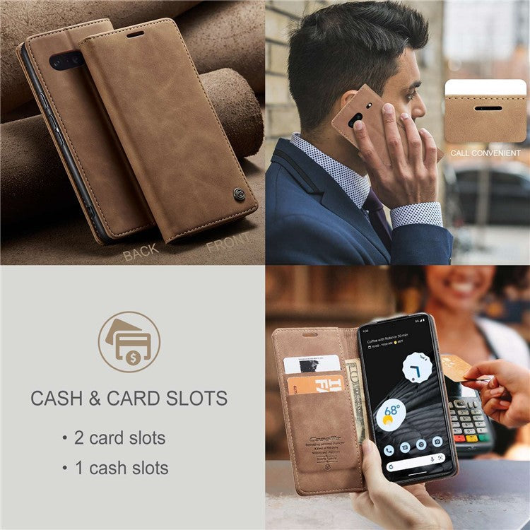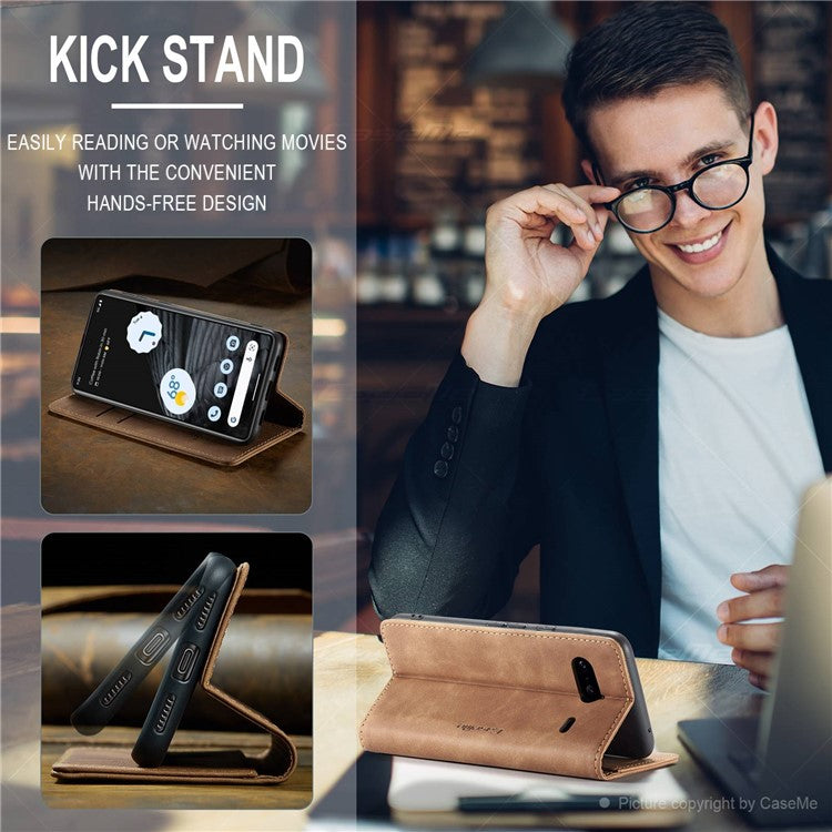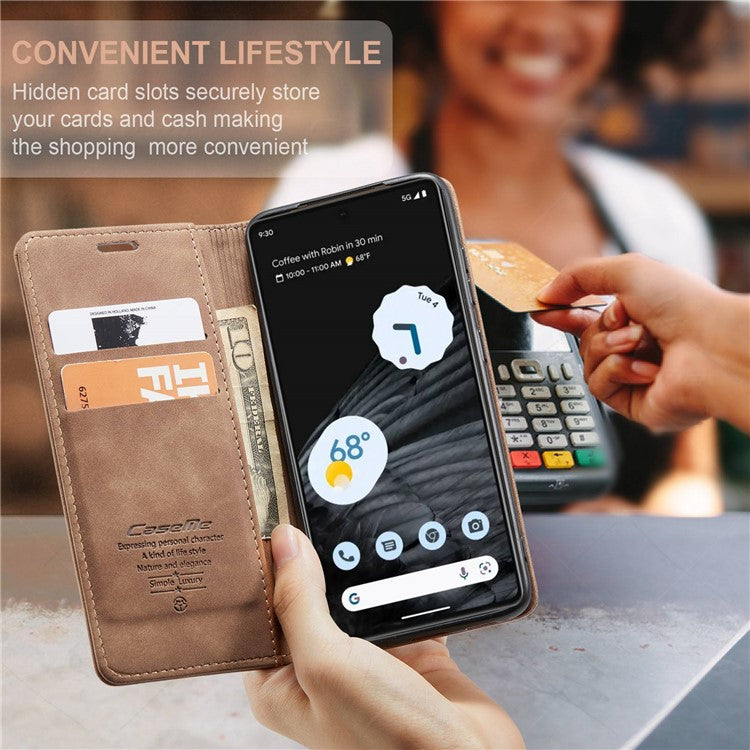 CASEME 013 Series Anti-drop Flip Phone Case for Google Pixel 7 5G, Magnetic Auto-absorbed Anti-scratch PU Leather Phone Cover with Wallet Stand - Brown