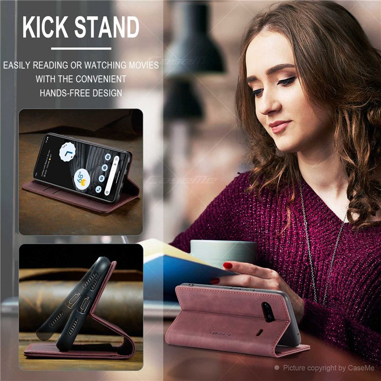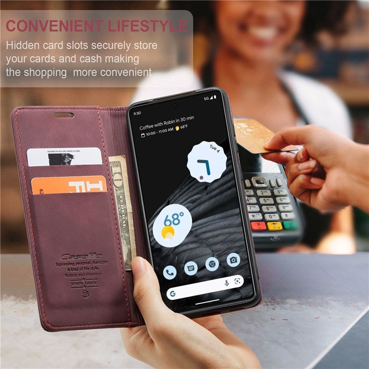 CASEME 013 Series Anti-drop Flip Phone Case for Google Pixel 7 5G, Magnetic Auto-absorbed Anti-scratch PU Leather Phone Cover with Wallet Stand - Red