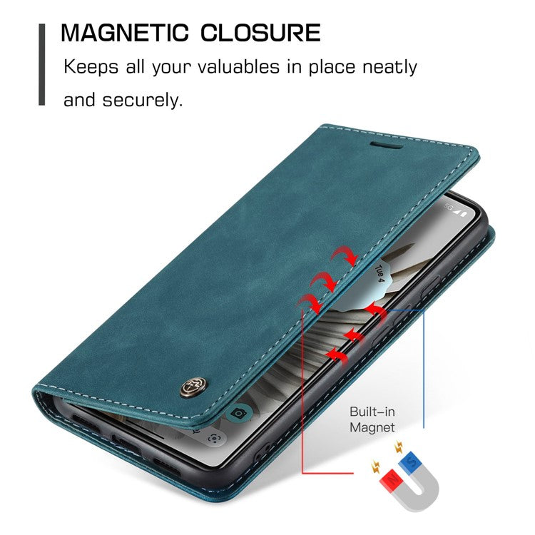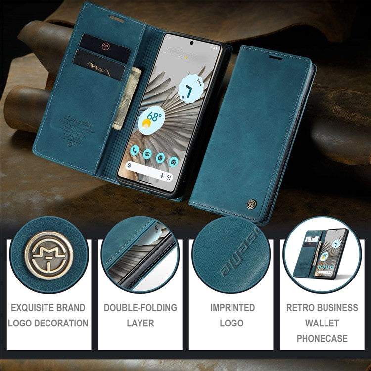 CASEME 013 Series for Google Pixel 7 Pro 5G Full Protection Phone Case PU Leather Flip Wallet Cover Stand Magnetic Auto-absorbed Shell - Blue