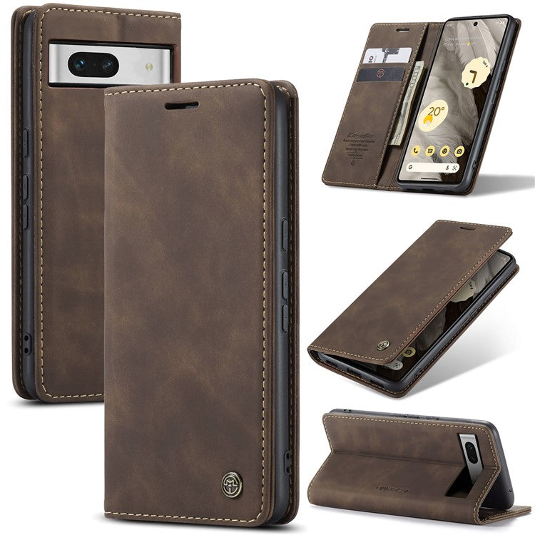 CASEME 013 Series For Google Pixel 7a Case Card Holder Stand Leather Phone Cover - Coffee